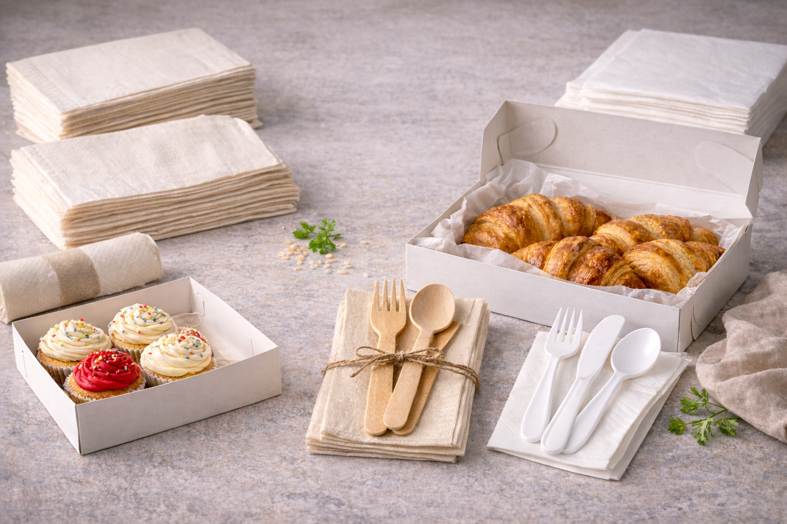 Absolutely! We specialize in sustainable solutions including biodegradable bagasse plates, bowls, wooden cutlery, and recyclable paper products.